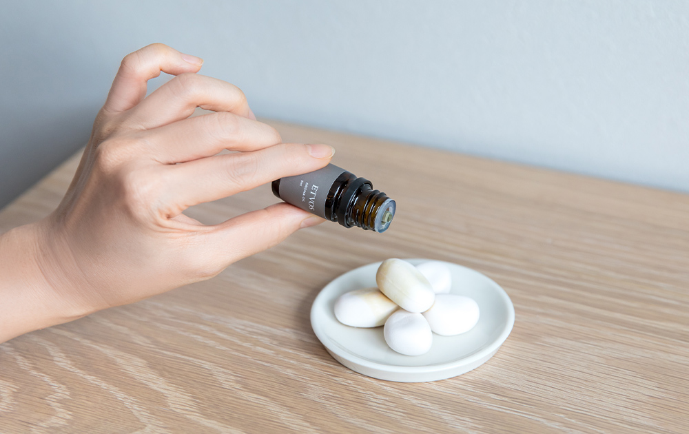アロマオイルはアロマストーンなどに数滴垂らし、やわらかな香りを漂わせて。