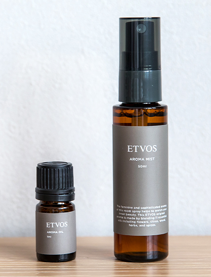 アロマオイルは数滴垂らして使いますが、アロマミストは数回空間に噴きかけて楽しむもの。仕事の合間に瞬間的にリフレッシュする時にも有効です。エトヴォスのアロマミストは、爽やかなベルガモットや華やかなゼラニウム、高貴なサンダルウッドなど、11種類の天然精油をブレンド。誰もが心地いいと感じるユニセックスな香りです。