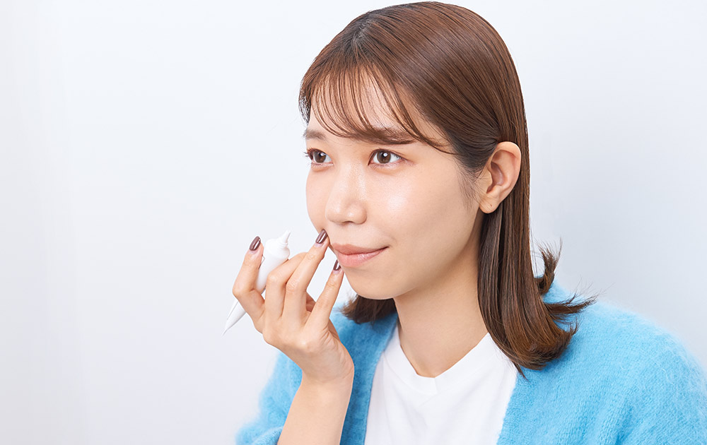 その日の肌状態を見極めながら、うるおい不足なら「モイスチャーライン」、ニキビや肌荒れが気になる時は「バランシングライン」で予防。花粉の時期は、額やあご周りのトラブルが起きやすいため、「バランシングVCクリアスポッツ」が頼れる味方。オイルフリーの透明ジェルなので、気になる時は日中も携帯してメイクの上からも塗ってケアしています。