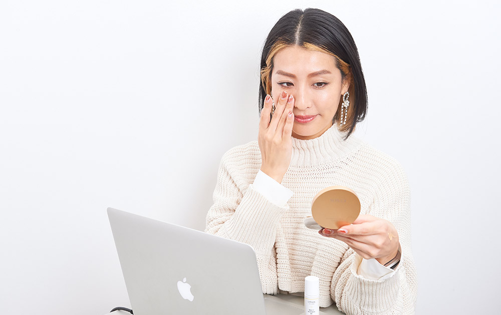 Tゾーンなど皮脂が多くてテカる部分と、目元や口元、頰など乾燥しやすい部分にくっきりわかれる混合肌。さらに花粉の時期はニキビも出現。その日の肌状態を見極めながら、スキンケアを変更するようにしています。