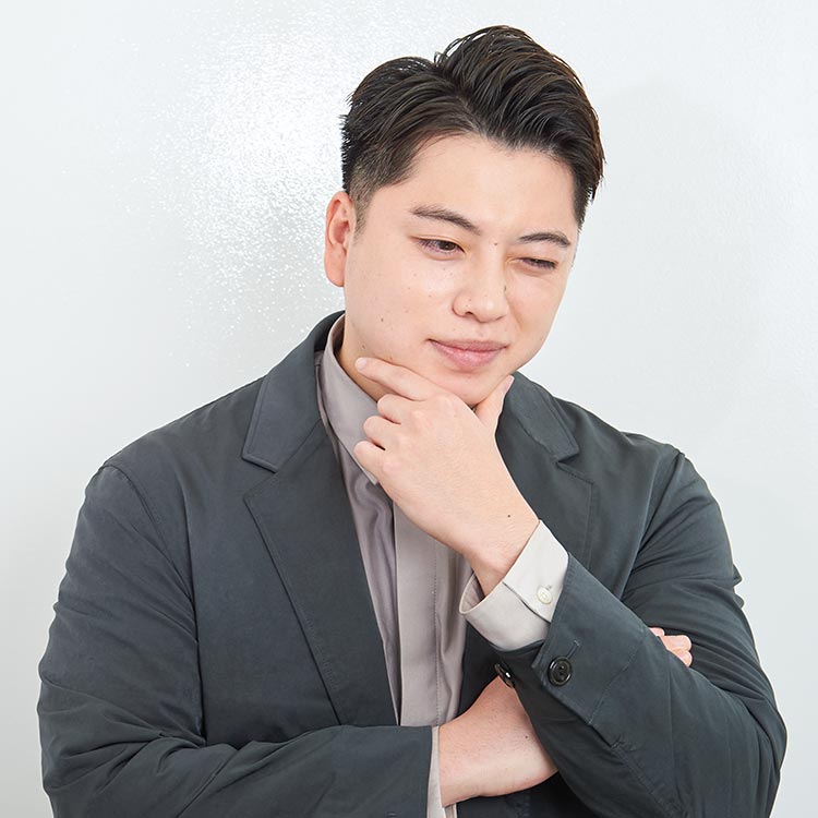 お客さまに楽しんでキレイになっていただける場となるよう、ビューティプランナーたちと魅力的な売り場作りを進め、東奔西走する日々。女子社員たちも羨む“美肌男子”。