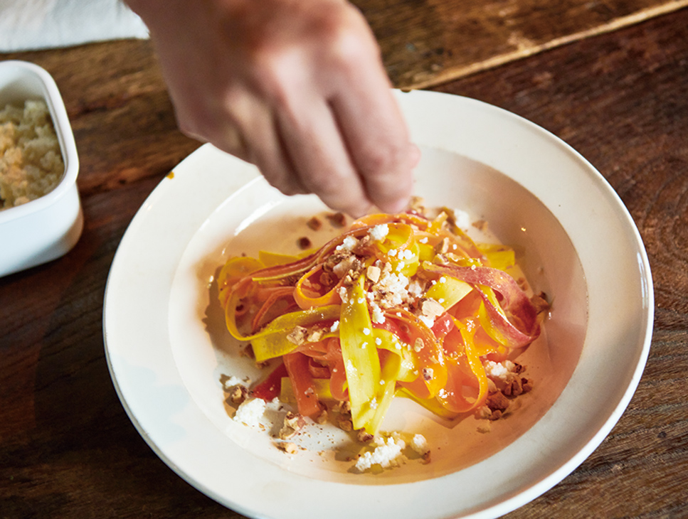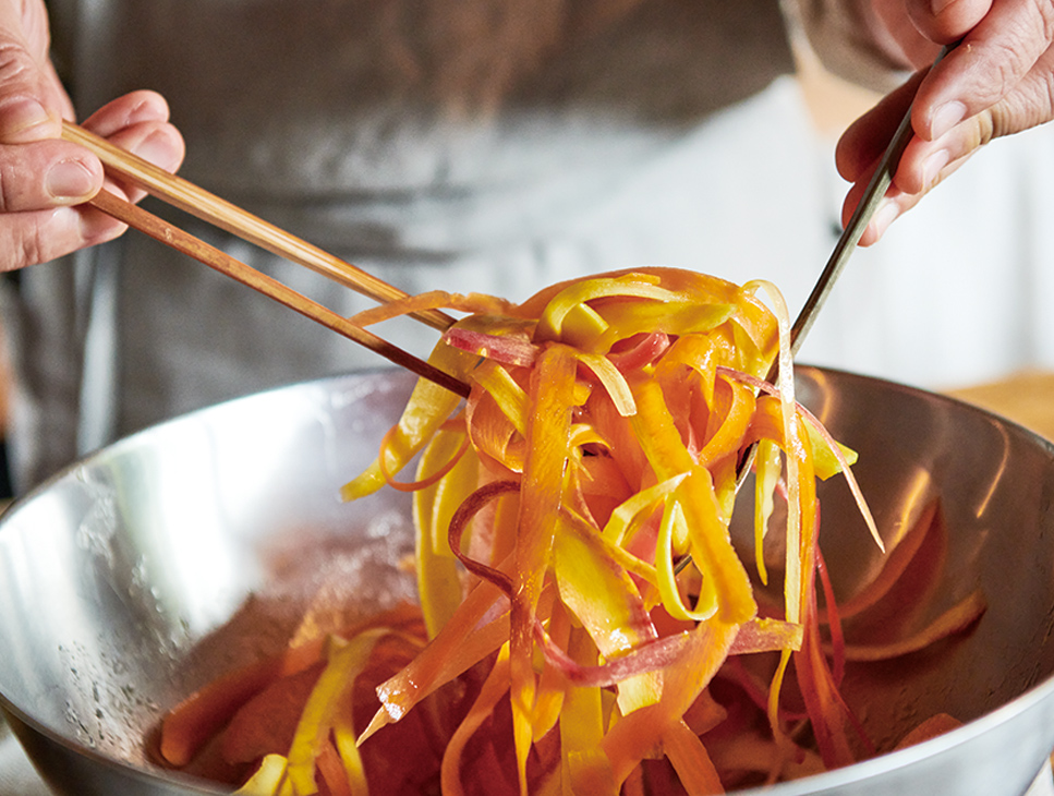 5 にんじんをマリネするスライスしたにんじんとマリネ液を合わせ、必要に応じて塩で味を調える。