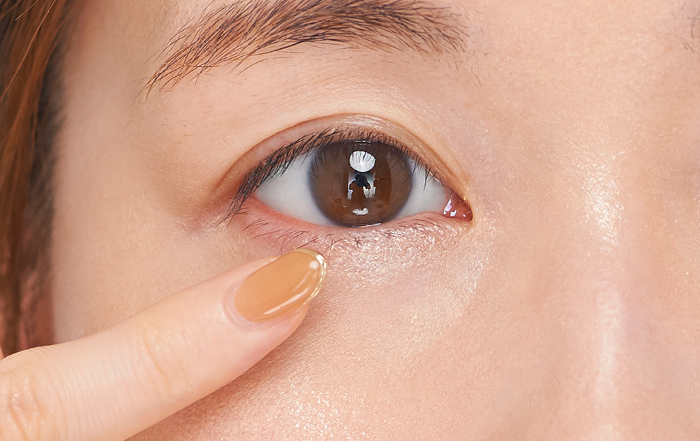 2.薬指の腹にアイバームを取り、手の甲で調節しながら、涙袋、特に黒目の下部分にちょんちょんとジュエリー置き。