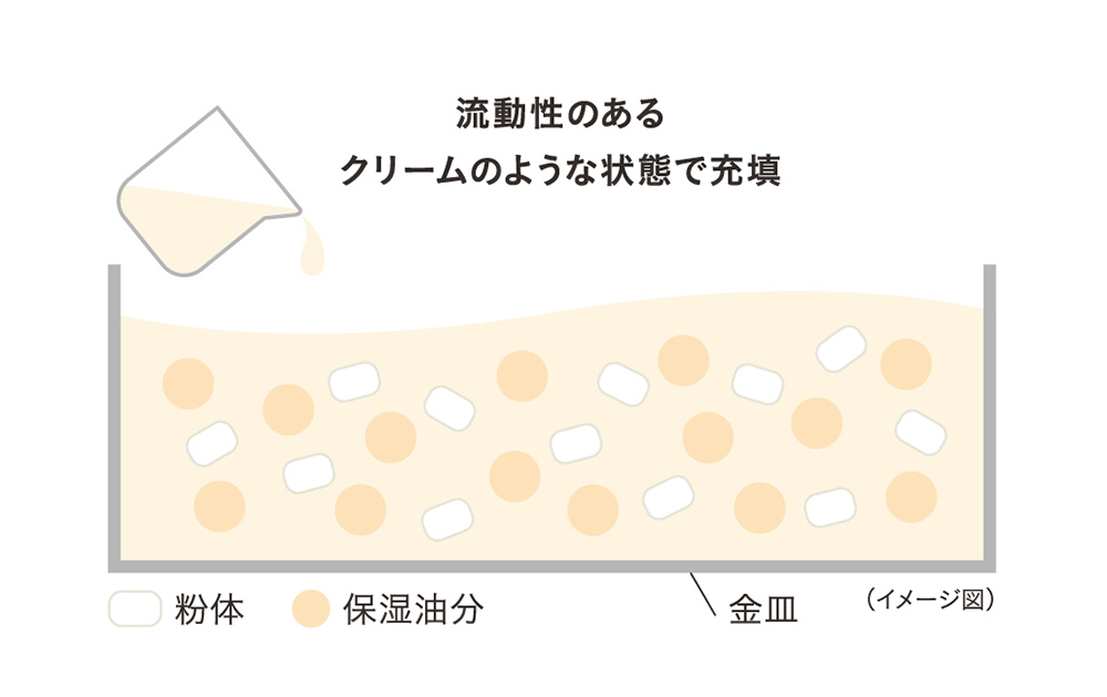 感触のことはこれまでにお話ししてきましたが、“しっとりしているのに、すべるように顔全体にスルッと広がるパウダー”のテクスチャーにこだわりました。