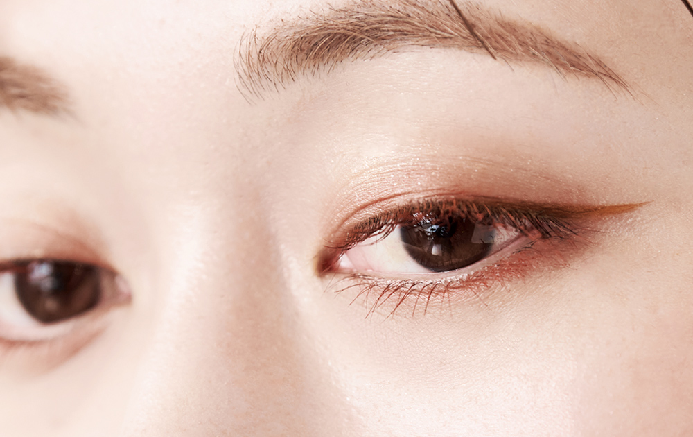 アイラインは黒目の上だけ太く描き、丸みを感じさせる瞳に。