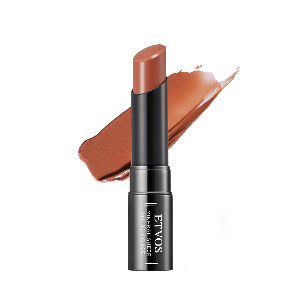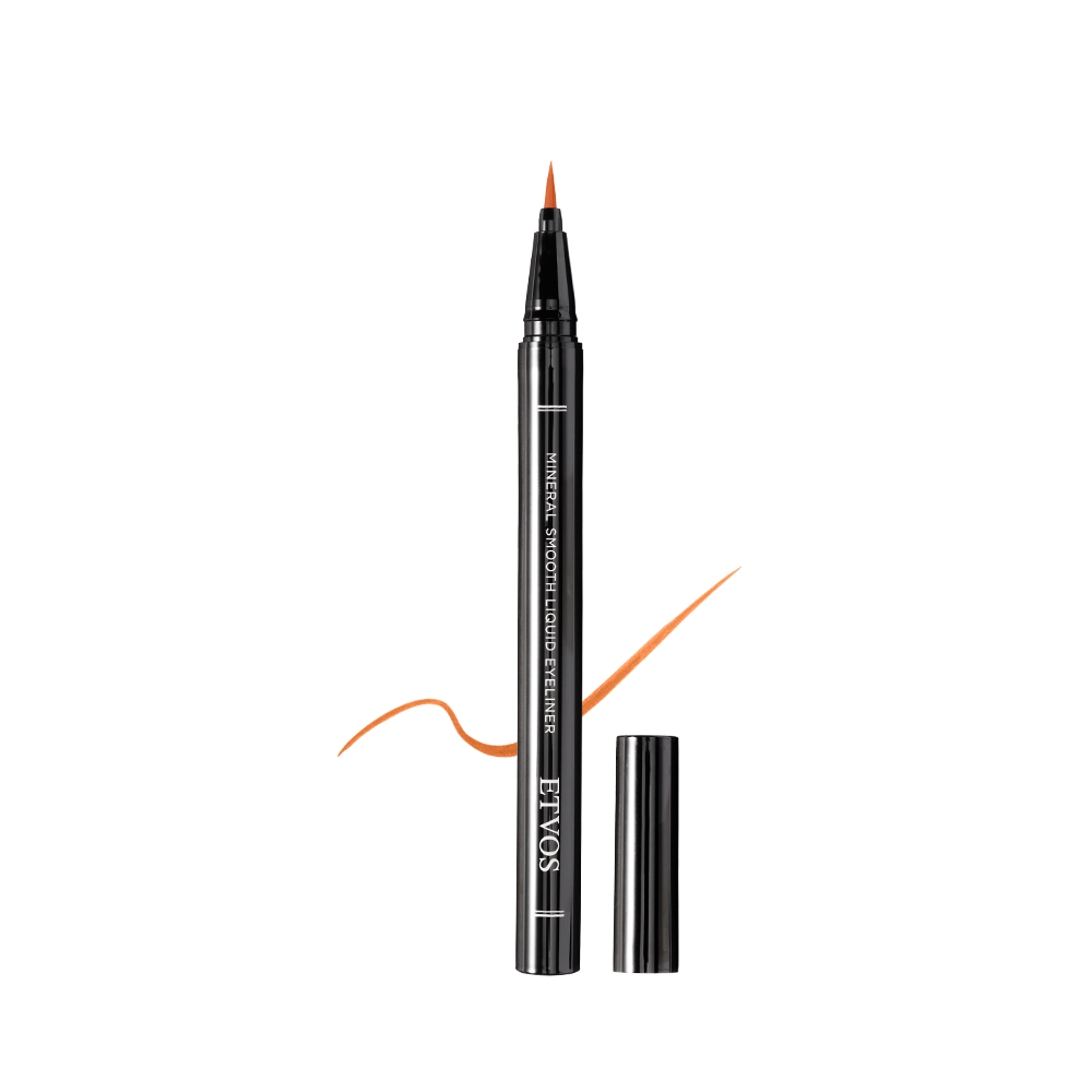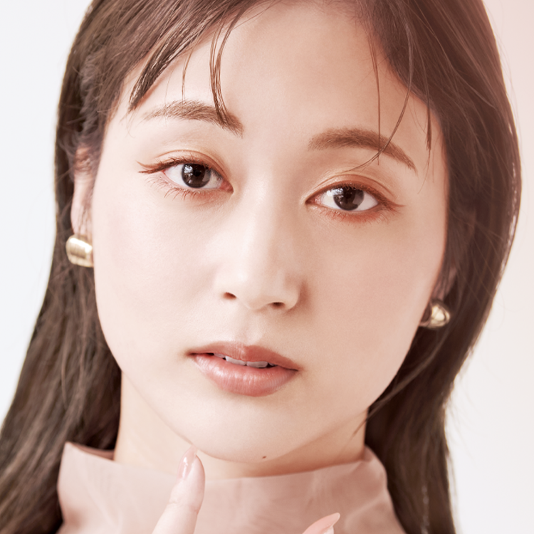 赤みのあるアイシャドーと相性のよい、落ち着きのあるオレンジカラー。長めに引いたアイラインも、明るい陰影になって表情に溶け込みます。