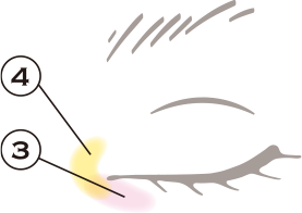 ③Aをブラシに取り、図の位置にサッと塗る。