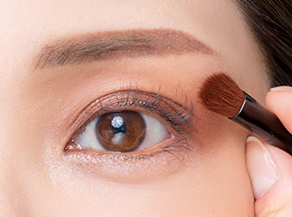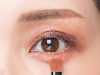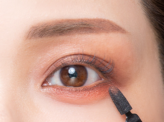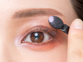 アイホール全体にDを広げる際は、眉下まで大きく広げるのがポイント。綺麗なグラデーションになるよう、まつ毛の生え際からやさしく撫でるように上に塗り広げて。