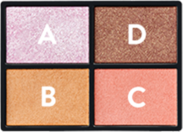 Aを太チップに取り、目頭・黒目の上にハイライトの様にのせる。