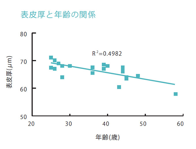 年齢と肌全体の厚みの関係