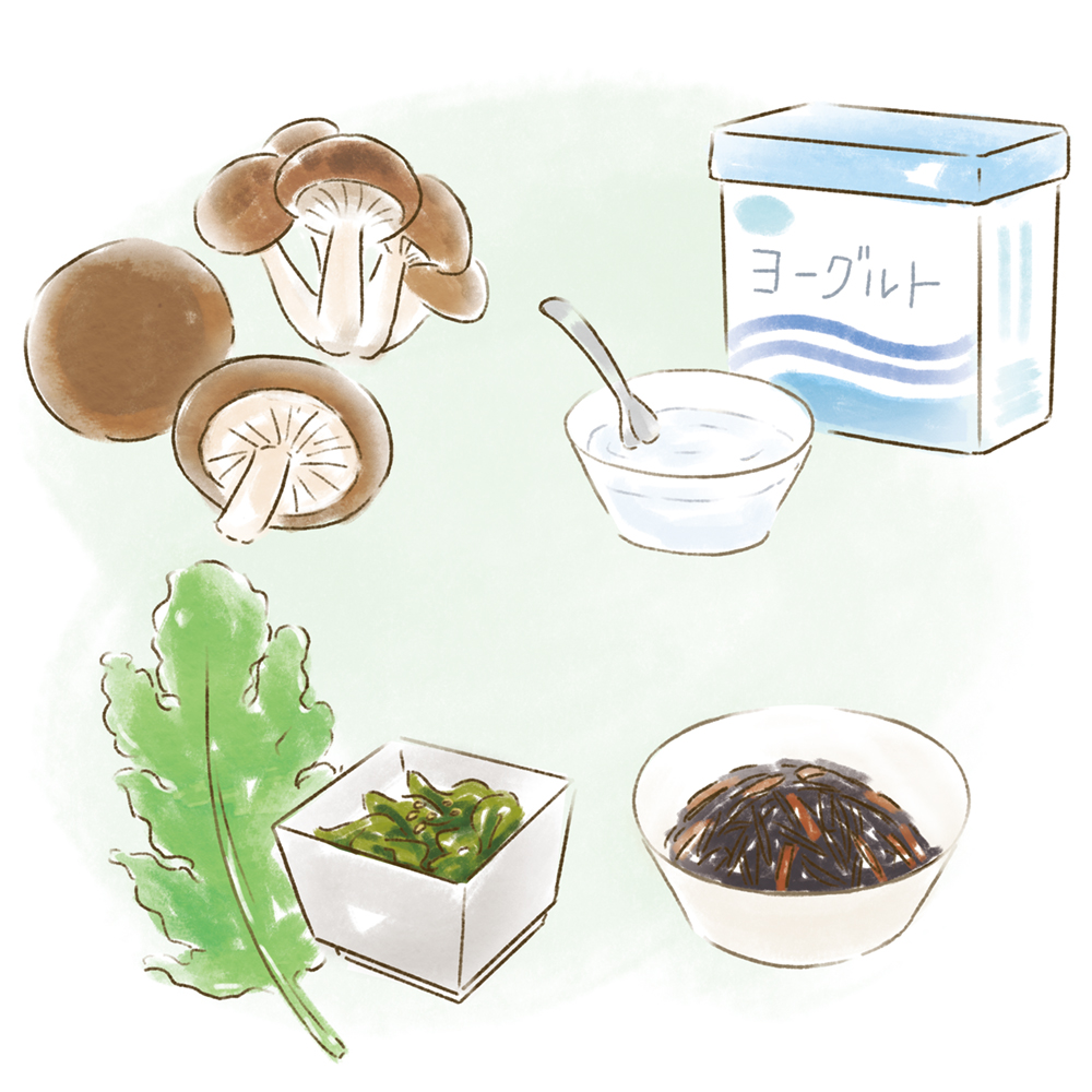 「腸脳皮膚相関」という言葉があるように、腸と脳と肌は密接に関わっていて、腸の健康が美肌を育むといわれています。ヨーグルトや納豆などの発酵食品、食物繊維の多いきのこや根菜(ごぼう、レンコンなど)を積極的に食べる習慣を身につけて。