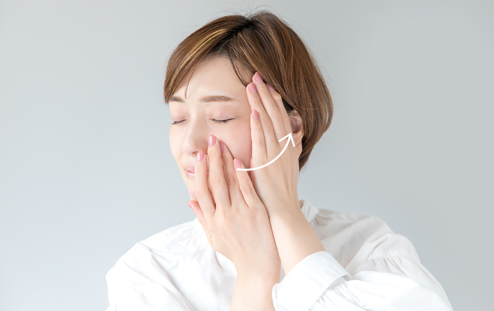 6頰の筋肉を下から上へ持ち上げて10秒キープ