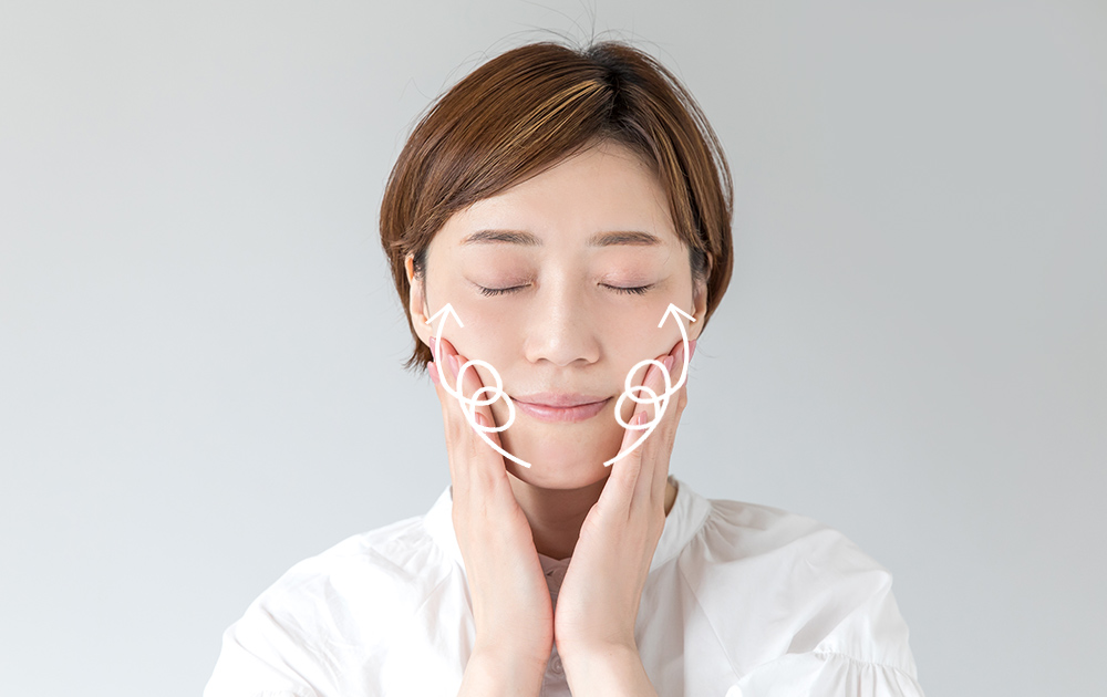 一度顔全体にクリームをのせ、さらに内から外へ大きく手を回しながらマッサージします。