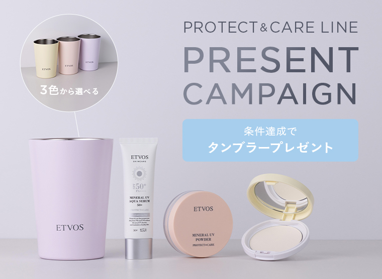 期間中、プロテクト&ケアラインを含む11,000円(税込)以上ご購入で、ETVOSオリジナルタンブラー(全3色)をプレゼント。