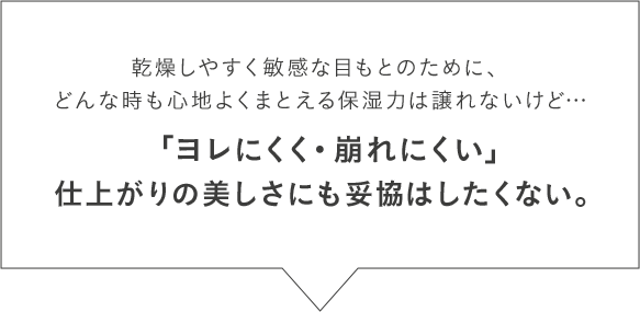 敏感な目もとに求められる相反するニーズに応えるために、保湿力と質感のカギを握る2つのオイルの配合バランスを徹底的に追求し、磨きあげました。