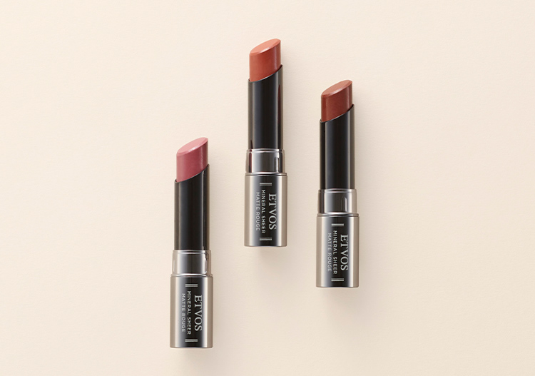 エトヴォスならではと言える、「植物由来のオイル」、「ワックス」、「美容成分」、「天然由来のミネラル」、「色素」でつくられたルージュ。仕上がりはセミマットでありながら、リップクリームのような塗り心地でうるおいを保ちます。さらに、唇特有の悩みに特化した美容成分も配合。お湯と石けんで落とせるクレンジングフリー。