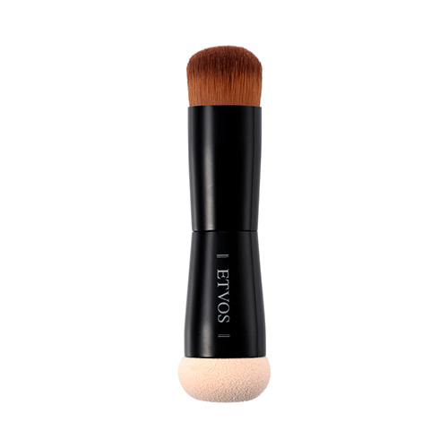 コシのあるブラシと肌当たりのいいパフが両サイドについているパフ&ブラシ。リキッドやクリームファンデーションのツールとしても使えます。手が汚れずに薄く均一に肌に塗布でき、自分好みのなりたいツヤ感・カバー力に調整することができます。既存のエトヴォスのベースメイクアイテムと合わせてご使用いただけます。
