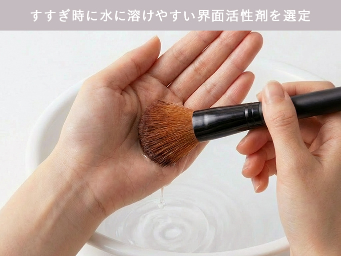 界面活性剤を厳選し、メイクツールの汚れをすっきりオフできる