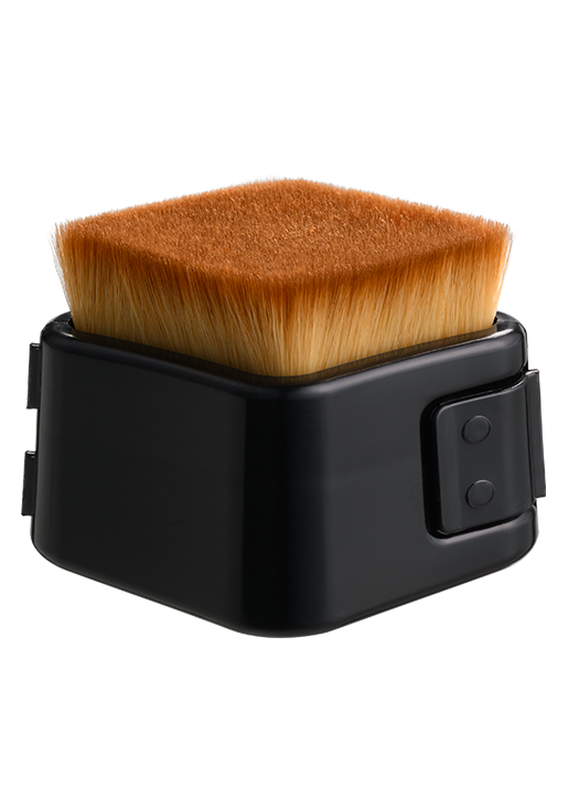 垂直にカットされた毛がソフトな肌あたりで心地よく、さまざまなベースメイクにマルチ対応するブラシ。