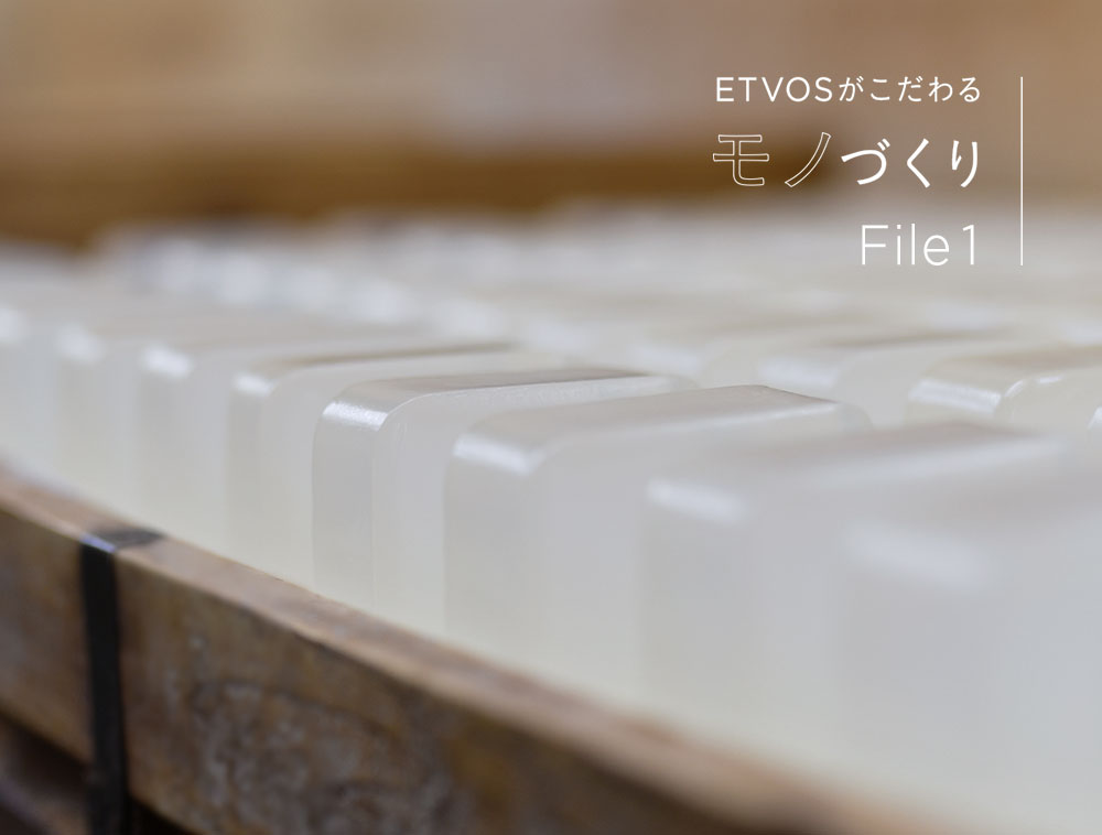 枠練り石けんはゆっくり時間をかけて熟成することで、保湿成分の配合濃度がぎゅっと凝縮されます。