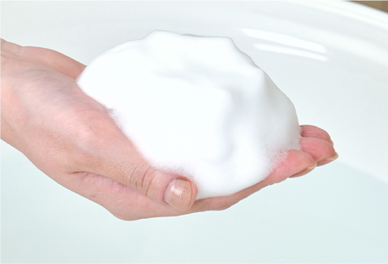 “もこもこ”とした泡質と“もっちり”と弾力のある濃密泡になるようにこだわりました。