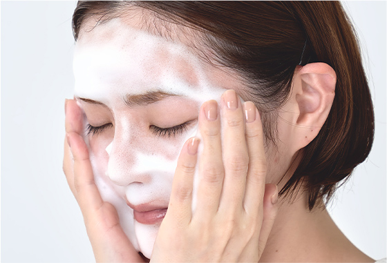 手で擦らず、たっぷりの泡でやさしくなでるように、20~30秒かけて洗いあげます。