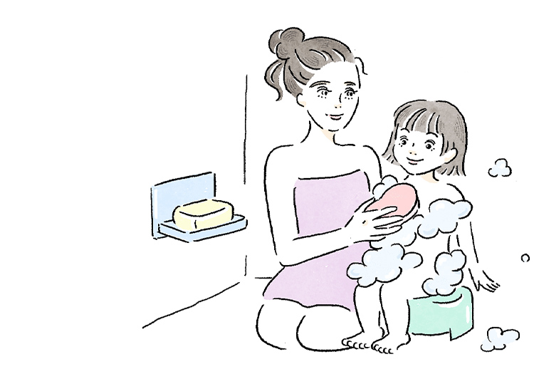 手で擦らず、たっぷりの泡でやさしくなでるように、20~30秒かけて洗いあげます。
