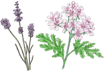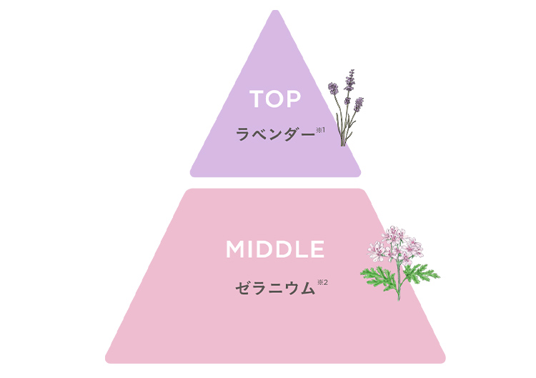 ほっとやすらぐ爽やかなラベンダー※1とゼラニウム※2のアロマが肌も心もやさしく包み込む。