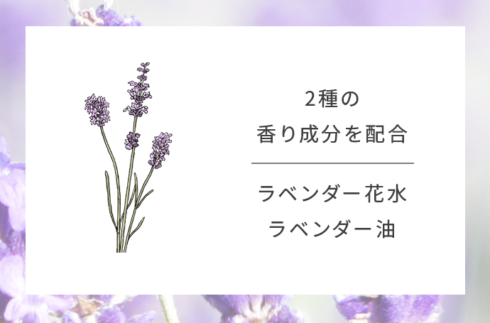 天然ラベンダーの穏やかで落ち着いた香りが、肌も心も心地よく包み込みます。
