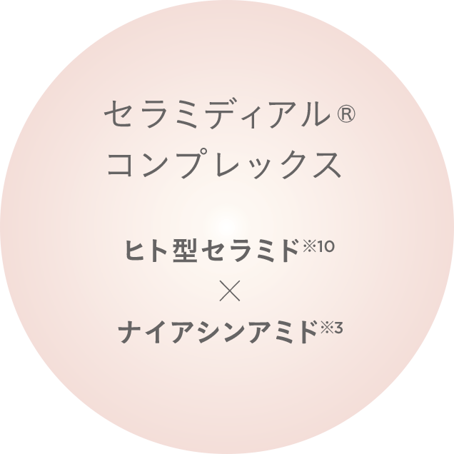 ビタミンBの一種であるナイアシンアミド※3と5種のヒト型セラミド※10が角層にうるおいを与え、乾いた肌に心地よいうるおいが深く続きます。