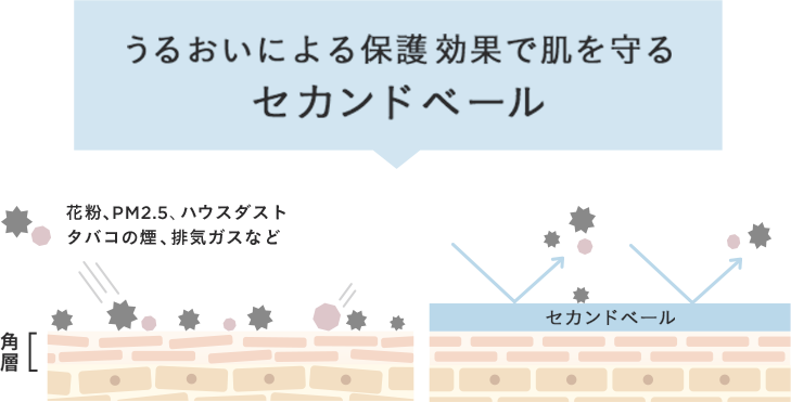 5種のモイストシールド成分※8セカンドベールを形成。花粉などの大気中の微粒子汚れ※7からガード※6し、乾燥による肌荒れを防ぎながら、すこやかな肌を守ります。