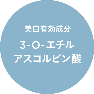 美白有効成分3-O-エチルアスコルビン酸が、メラニンの生成をおさえ、シミ・そばかすを防ぎ、保湿成分が透明感※8をサポートします。